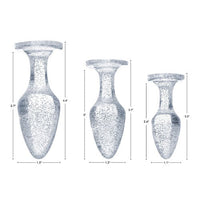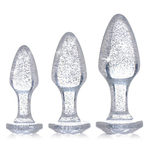 Expert anal players will appreciate the ease of which to warm up their ass for further fun with this glittery set of plugs! Choose the size that matches your comfort level and surprise your lover when you pull your pants down with this dazzling anal gem!