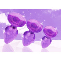This set of smooth, solid butt plugs features a shiny glittery purple pattern to decorate your booty while you play! These Glitter Gem plugs are tapered and slim, and graduate in size from small to large for easy training - perfect for beginners and experts alike!